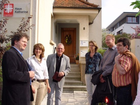 v.l.: H. Heintschel, Fr. Brütsch, H. Johann, Fr. Zander, H. Weis. H. TröllerZu Besuch im Haus St. Katharina in der Feuerwehrstraße waren Mitglieder der SPD-Stadtratsfraktion und des SPD-Vorstandes. Das Haus für Menschen mit geistiger Behinderung wurde im Jahre 2006 von der Caritas eröffnet und hat 12 stationäre Wohnplätze.